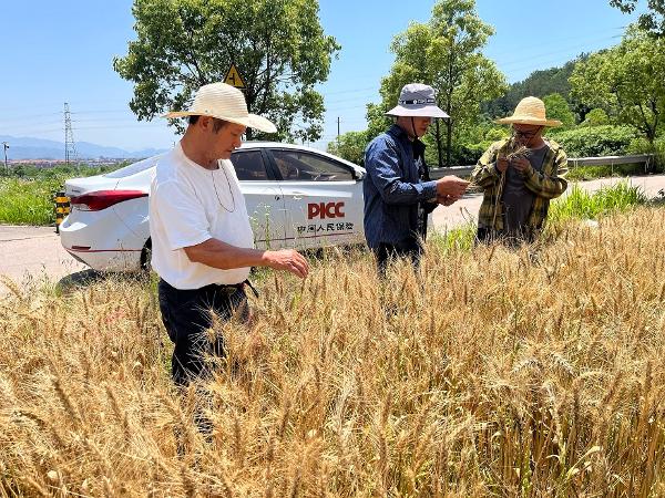 8月7日,人保财险金华武义支公司工作人员走访泉溪镇白革村、泉东村的水稻种植大户,开展中稻承保验标工作。