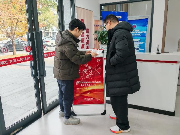 12月4日,第十二届国家宪法日如期而至。宪法宣传周中,人保财险金华金东支公司围绕“学习贯彻习近平法治思想,推动宪法深入人心”主题,在营业大厅开展宪法宣传活动,通过派发资料、现场讲解等形式向来访客户普及宪法精神和依法维权知识,进一步提升公众法治意识。活动现场设置普法展架,工作人员围绕宪法基本原则、公民权利义务以及与金融消费者权益保护相关的法律条款进行细致讲解,引导群众在日常生活中树立法治观念。