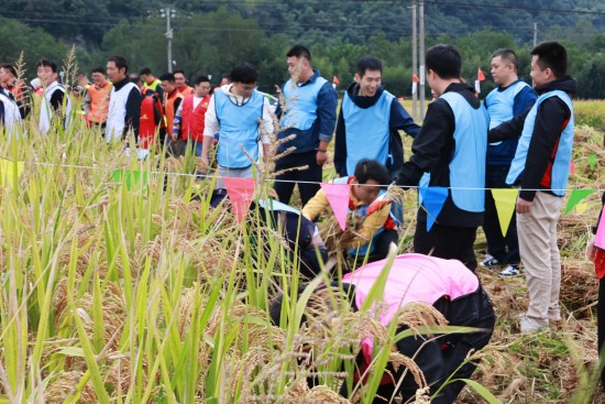活动在热烈的“团体割稻赛”中拉开帷幕。金色的稻浪里,由三家单位党员干部组成的竞赛队伍精神抖擞,挥镰割稻。大家分工协作,有的负责收割,有的负责传递,有的负责捆扎,现场气氛紧张而热烈。汗水与欢笑交织,不仅体验了农耕的艰辛与喜悦,更在协同合作中增强了团队的凝聚力和向心力,深刻领悟到“粒粒皆辛苦”的真正含义。